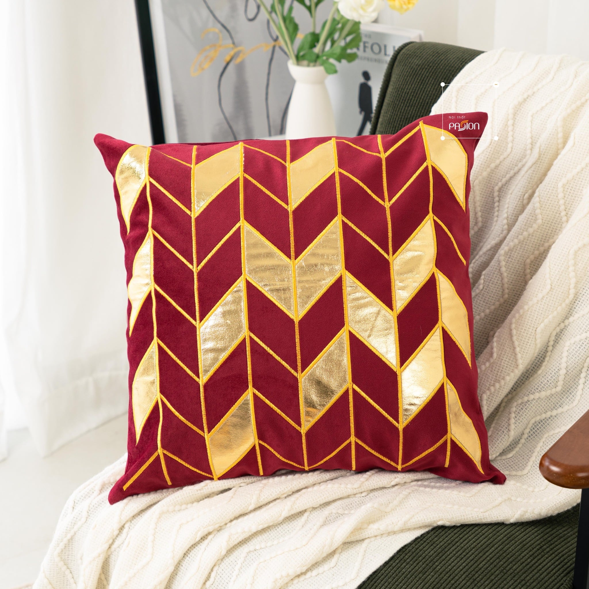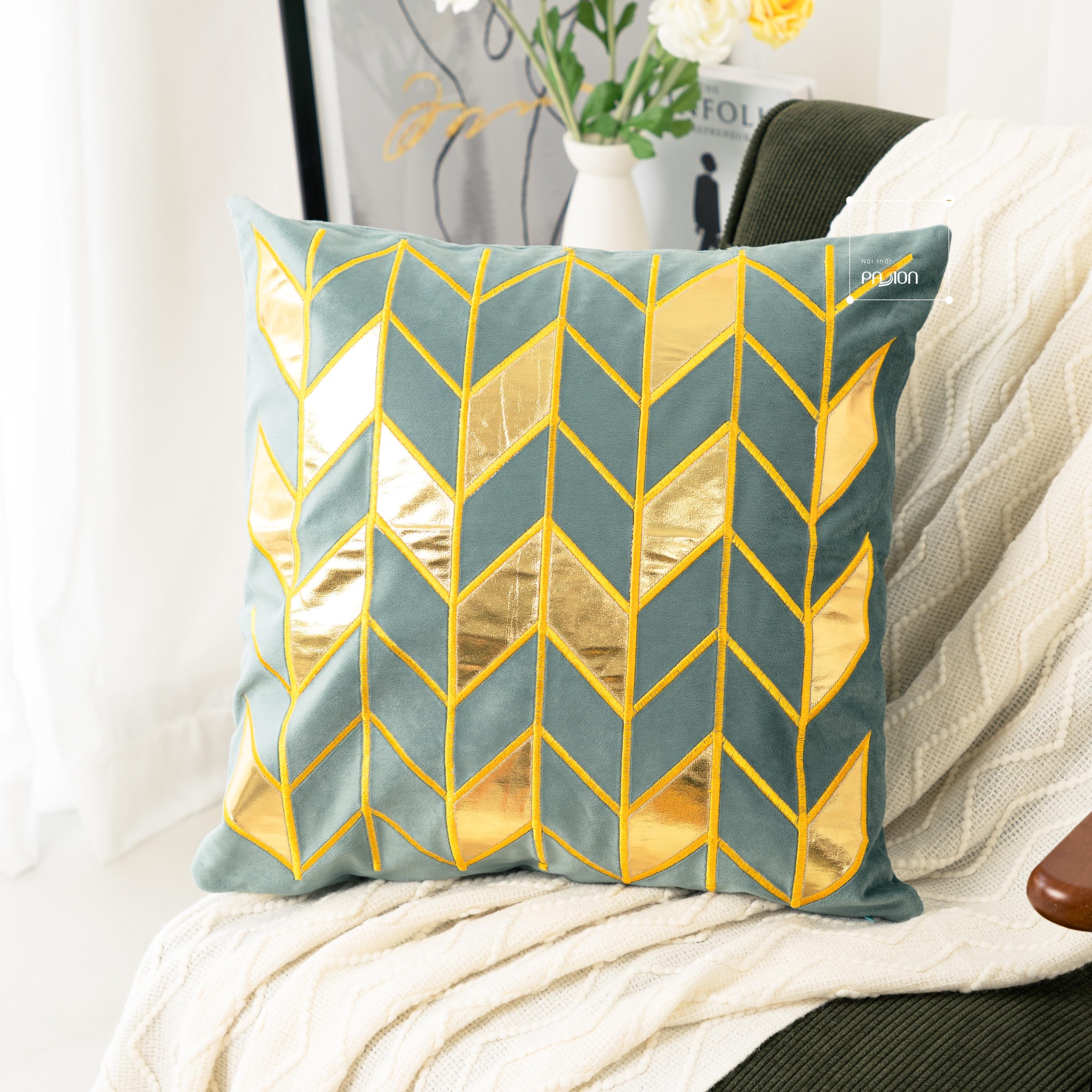 Vỏ Gối Tựa Lưng Nhung Hà Lan Dệt Sợi Ánh Bạc Họa Tiết Lá Hình Thoi KHUYẾN MÃI - ƯU ĐÃI