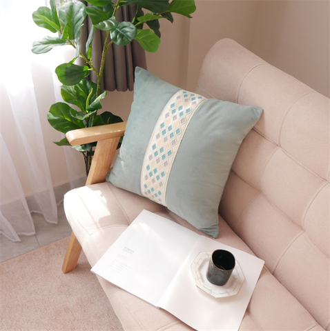 Vỏ Gối Tựa Lưng Nhung Thêu Giữa Chấm Bi Hình Thoi