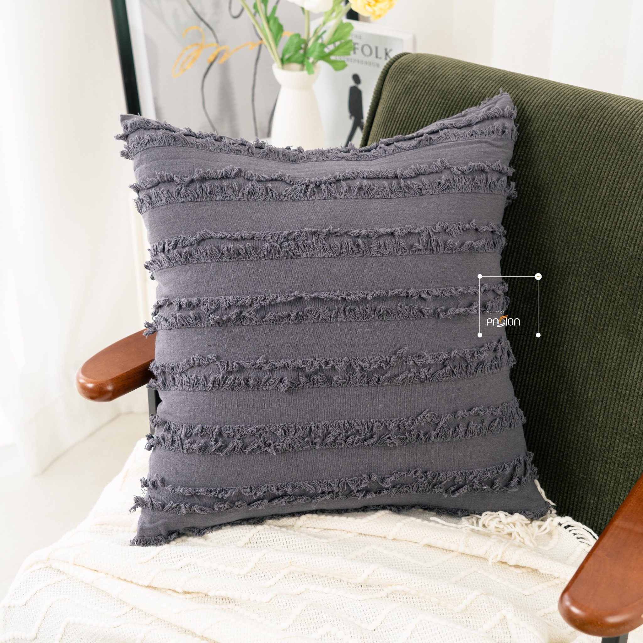 Với chất liệu cotton tua rua dày dặn sẽ giúp cho gian phòng bạn thiết kế trở nên độc đáo và nổi bật.