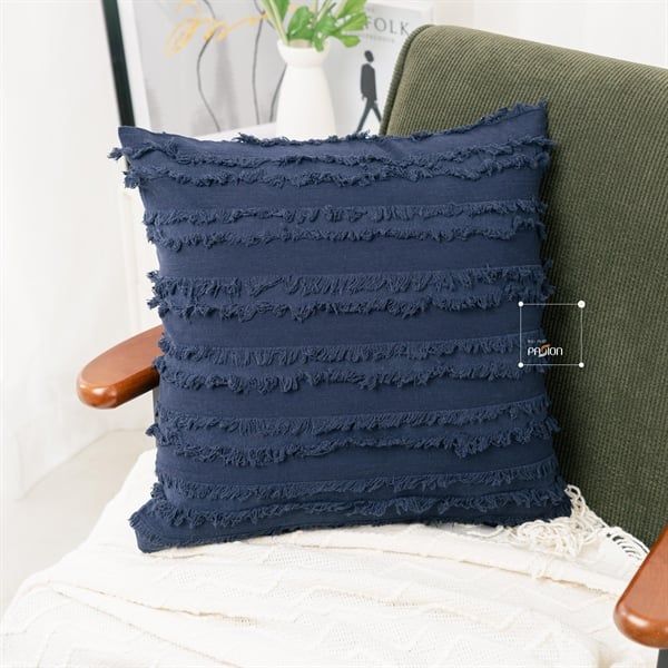 Vỏ Gối Tựa Lưng Sọc Tua Rua Vải Lanh Màu KHUYẾN MÃI - ƯU ĐÃI