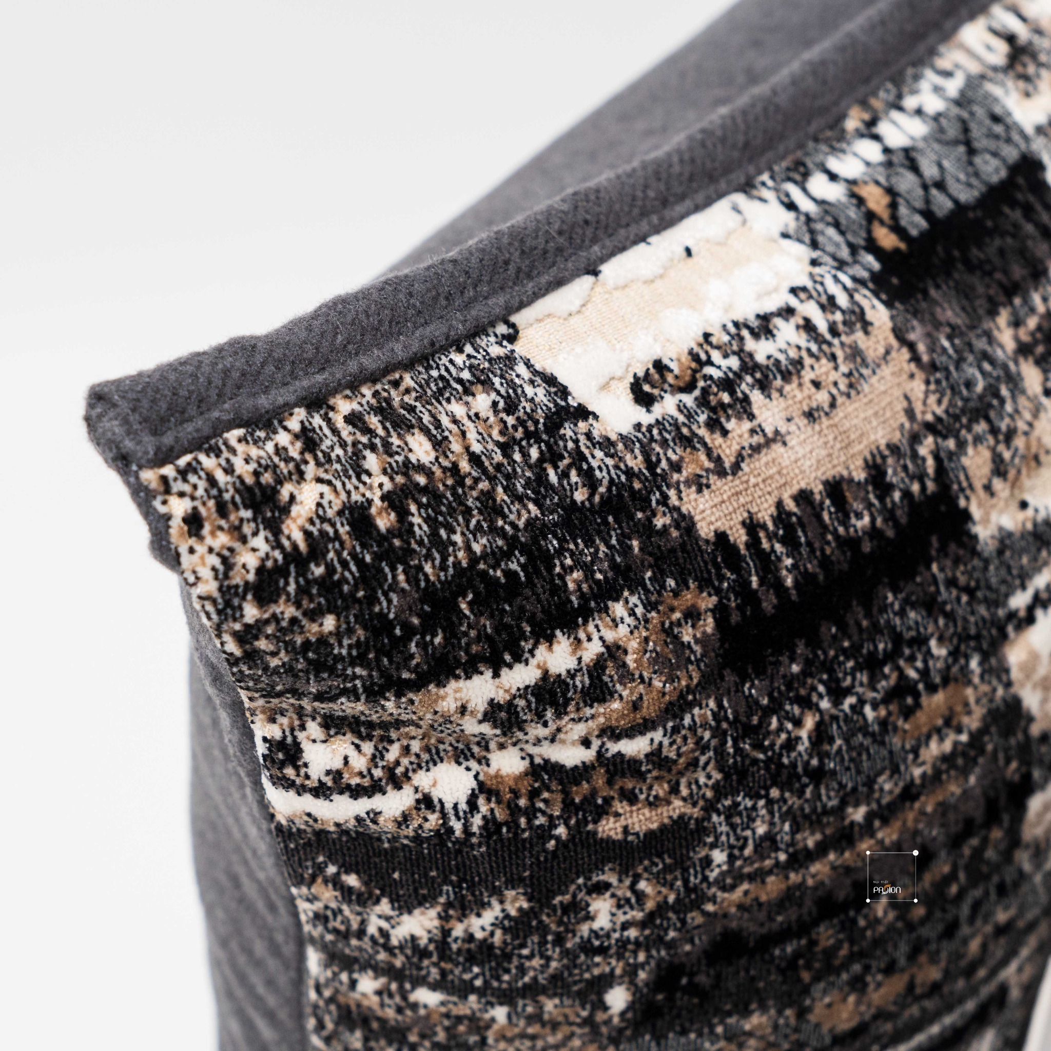 Phong cách hiện đại được thể hiện rõ nét qua thiết kế họa tiết nhung xám cafe của sản phẩm: