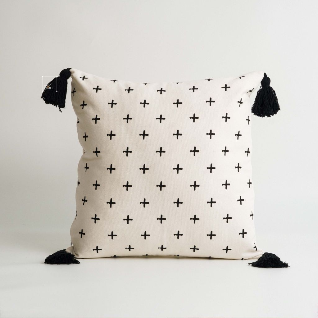 Vỏ Gối Tựa Lưng Sofa Linen Cotton Bohemian Tua Rua