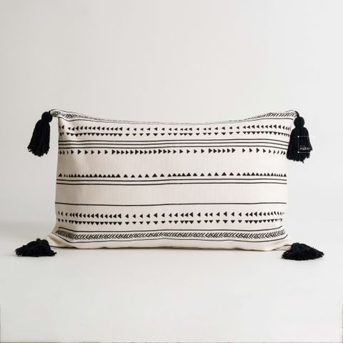Vỏ Gối Tựa Lưng Sofa Linen Cotton Bohemian Tua Rua
