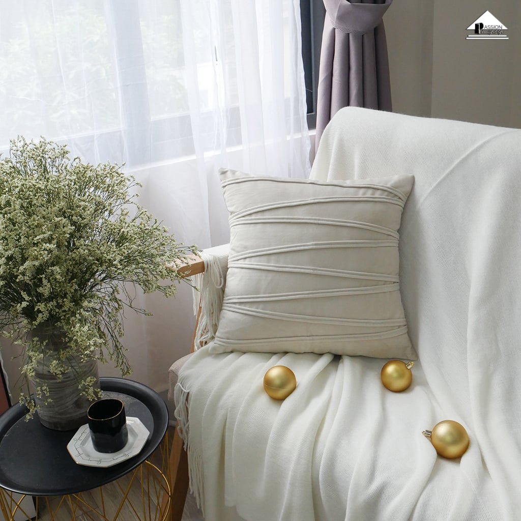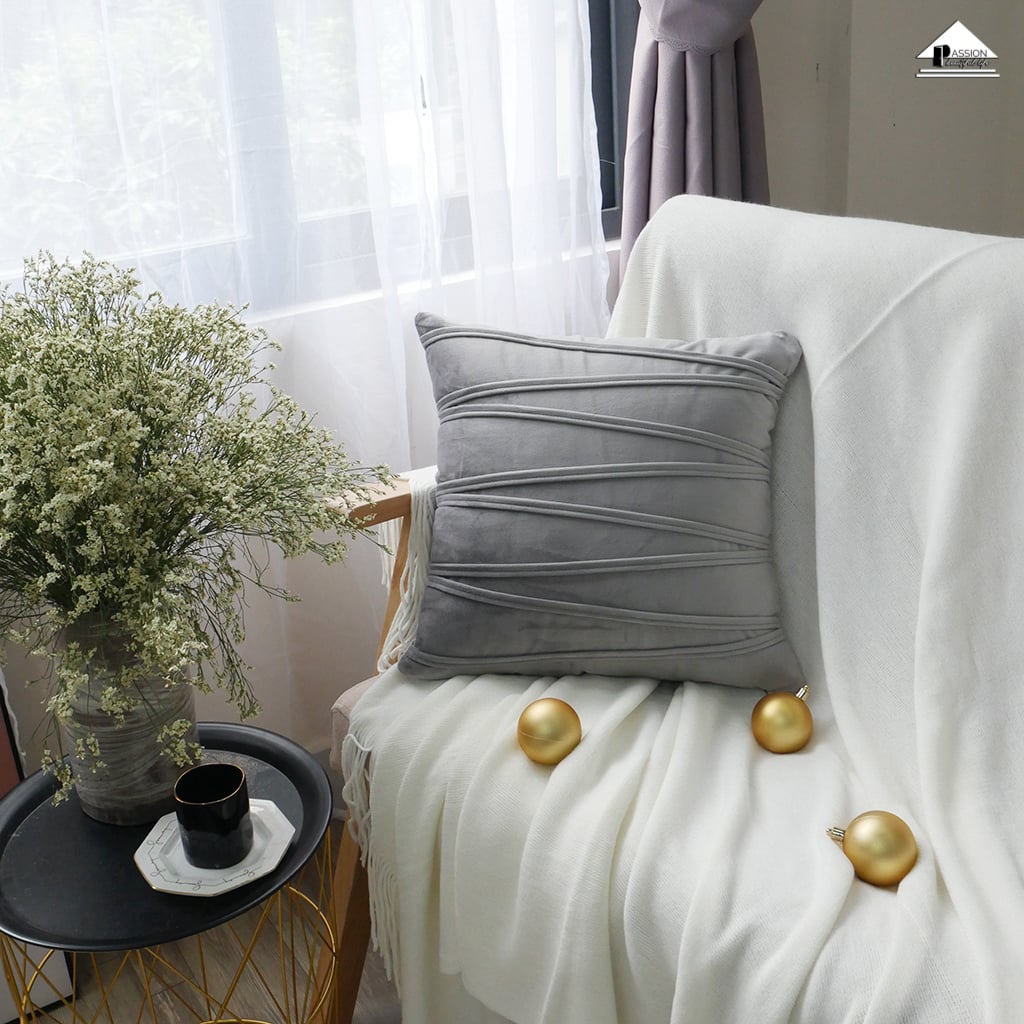 Vỏ Gối Tựa Lưng Sofa Trang Trí Nhung Dập Sọc Ziczac