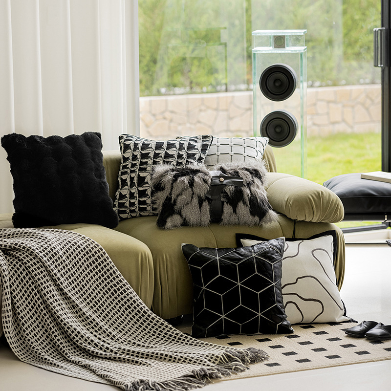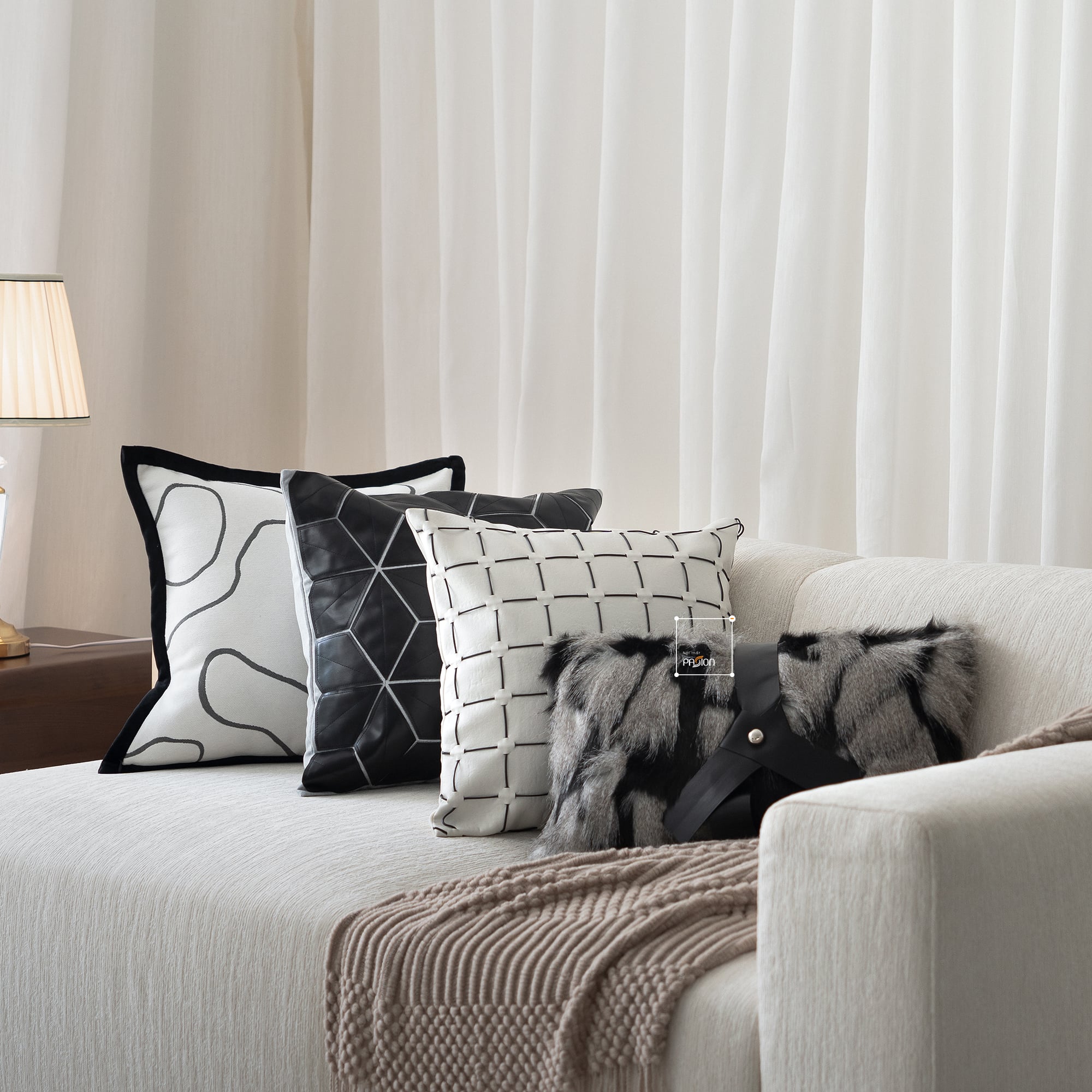 Một sản phẩm đẹp là sự cộng hưởng giữa chất liệu, màu sắc và cảm xúc. Vỏ gối tựa lưng trắng đen phong cách Bắc Âu tối giản được chế tác tỉ mỉ từ lông sợi dài và da PU bóng - hai chất liệu đại diện cho sự hiện đại, thời trang và tiện dụng.