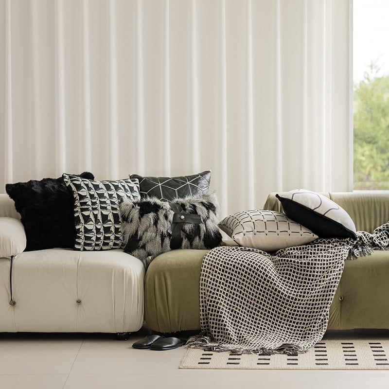 Vẻ đẹp của một không gian sống đôi khi không đến từ sự cầu kỳ, mà từ những chi tiết nhỏ được chọn đúng. Với vỏ gối tựa lưng trắng đen, bạn có thể dễ dàng biến đổi bầu không khí căn phòng chỉ bằng vài đường sắp đặt tinh tế.