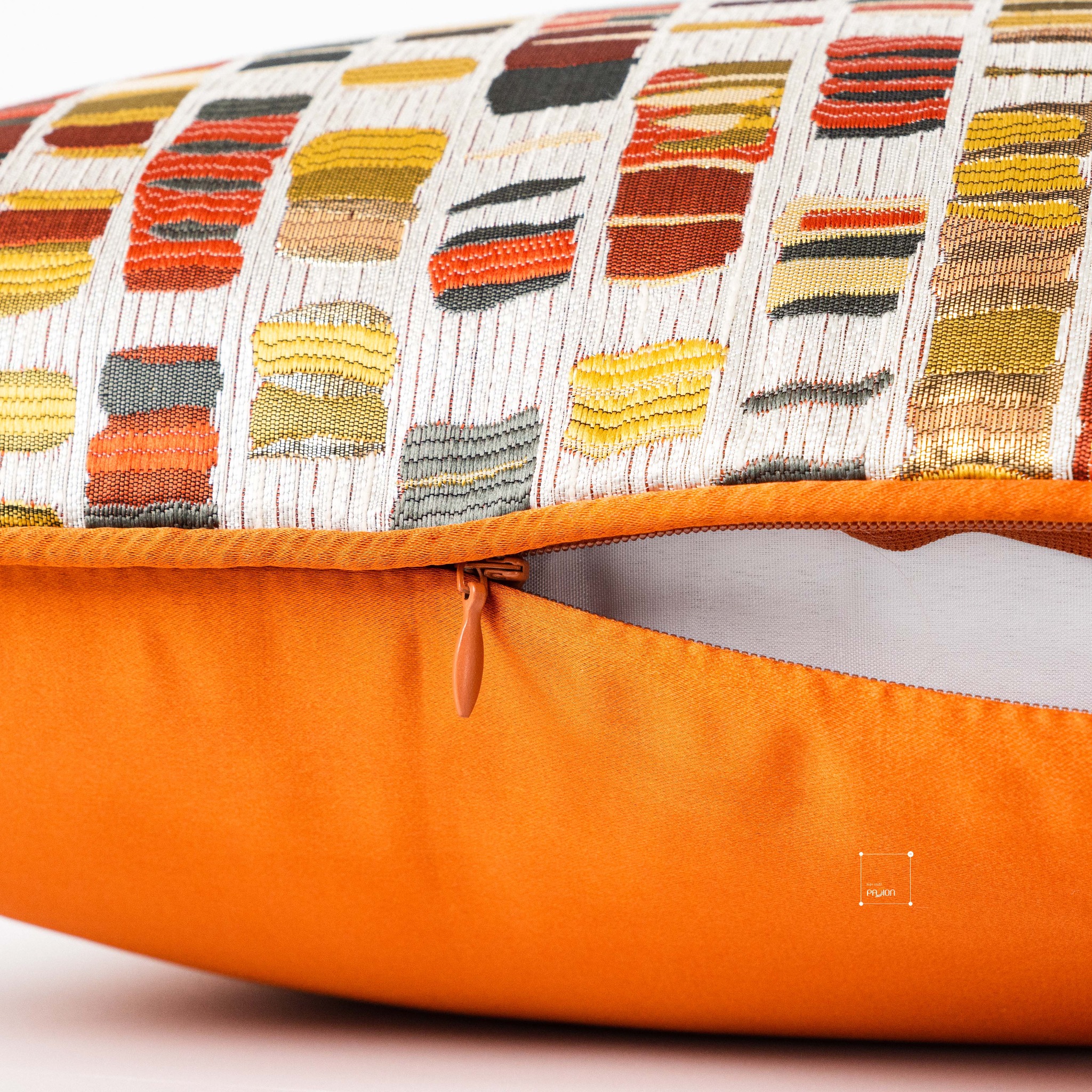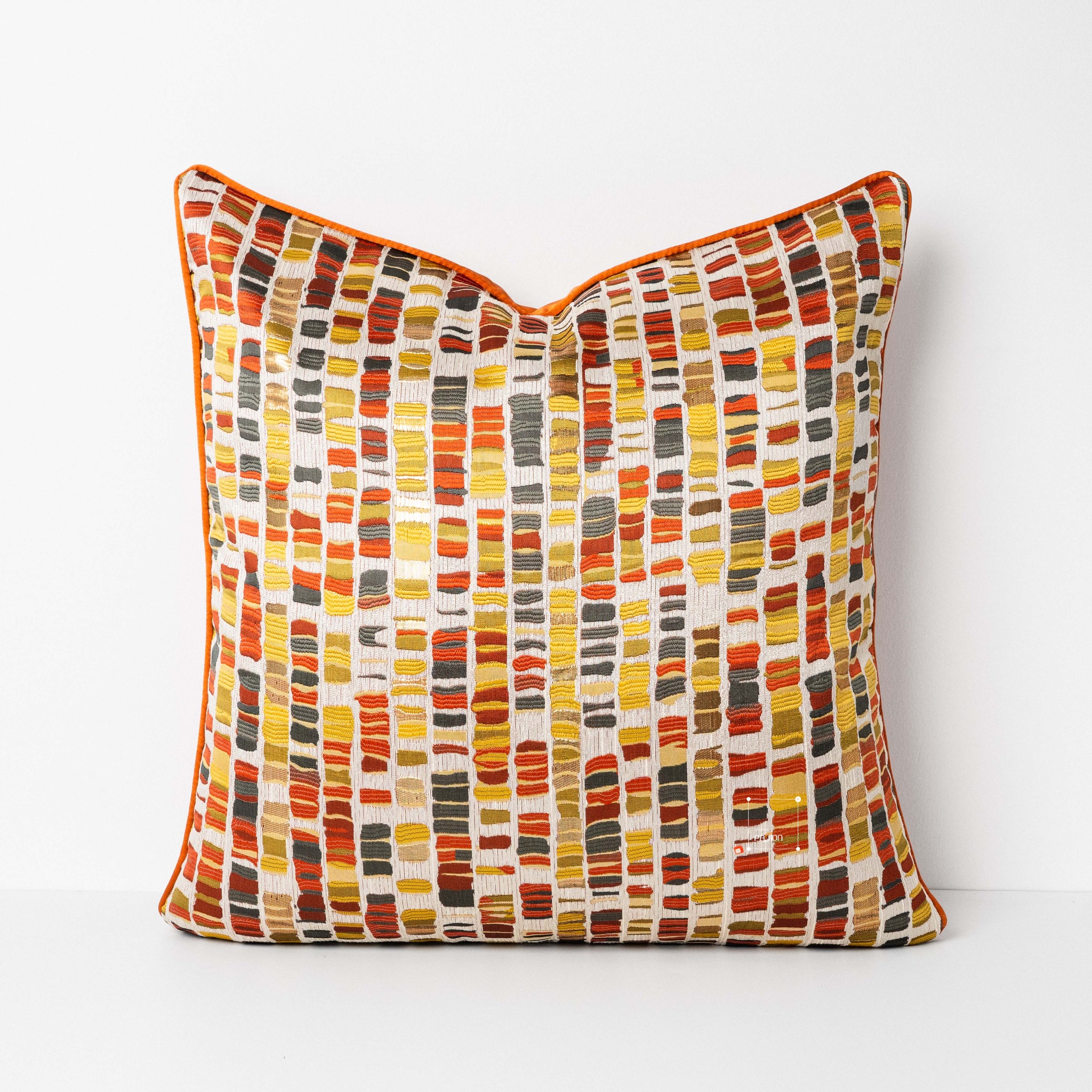 Gối tựa lưng trang trí thêu cao cấp được thiết kế với tông màu cam nhiều màu sắc nổi bật theo mẫu thanh lịch, dễ dàng kết hợp với nhiều phong cách nội thất khác nhau. Có thể sử dụng gối phối với các màu sắc trung tính hoặc tông màu pastel nhẹ nhàng giúp gối dễ dàng phù hợp với các màu sắc của ghế sofa, giường ngủ hay ghế bành.