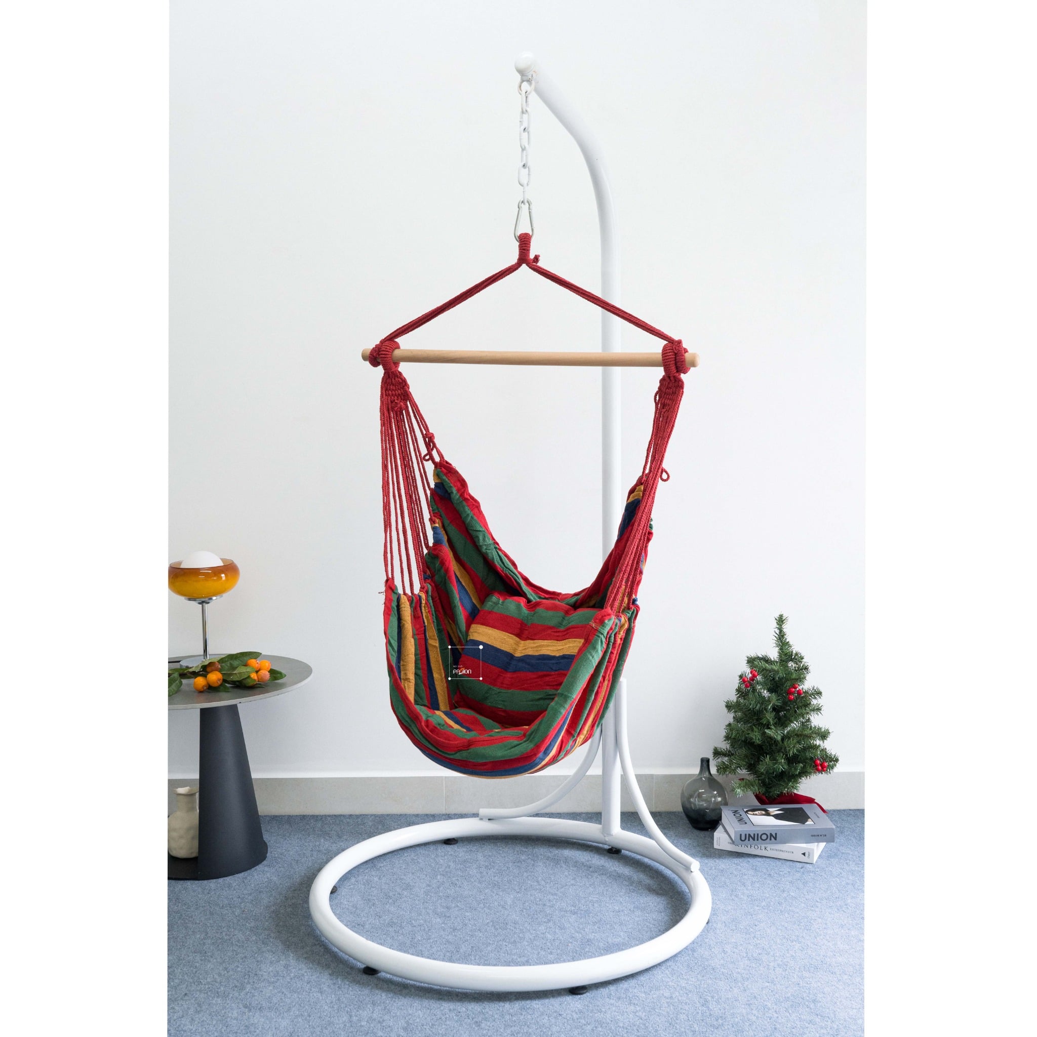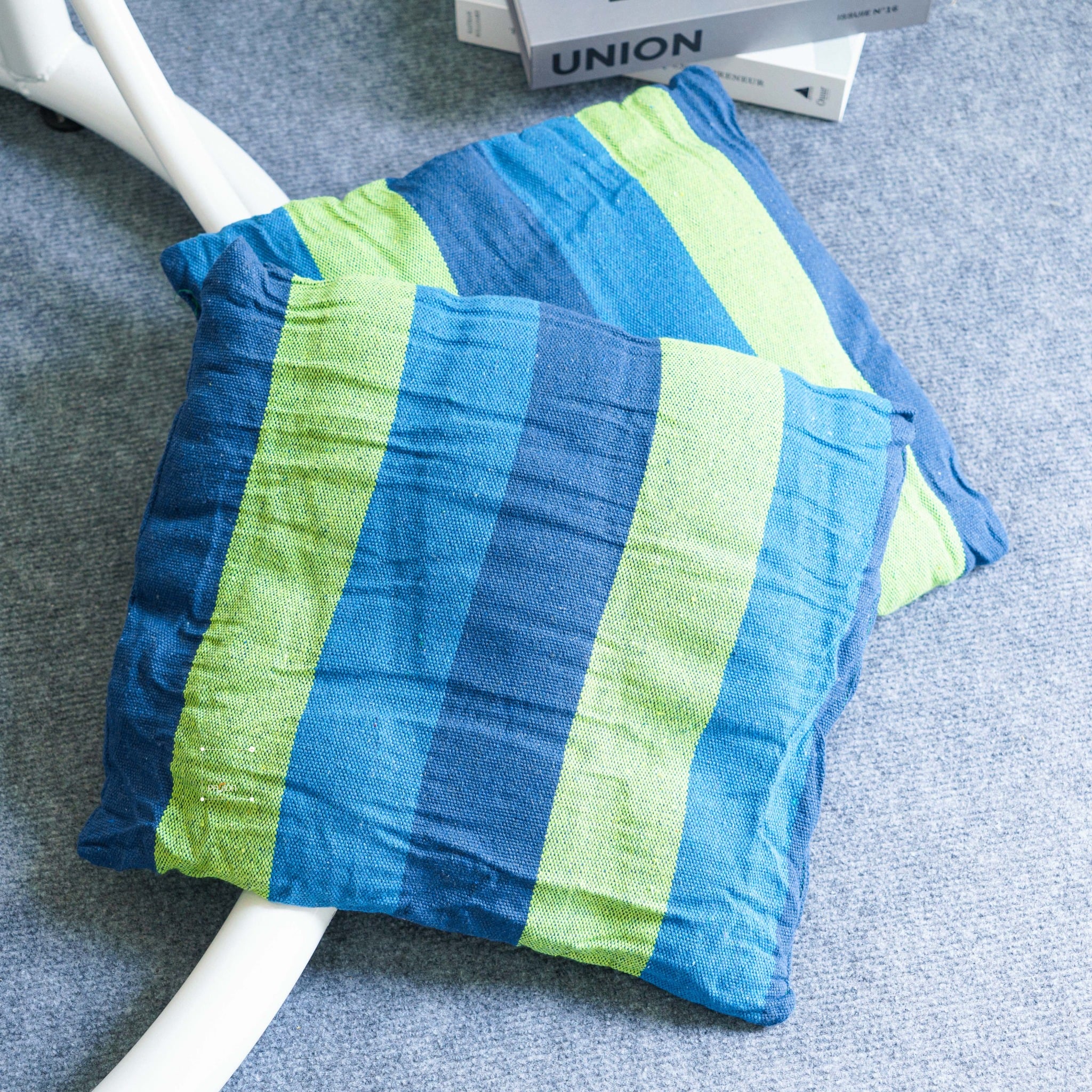 Đi kèm với đó Nhà Passion còn tặng thêm cho bạn 2 chiếc gối tựa lưng cùng tone màu và họa tiết, tối ưu khả năng thư giãn của Võng khi sử dụng. Bạn cũng có thể sử dụng bộ quà tặng này để trang trí cho không gian sống thêm lạ mắt nữa đó!